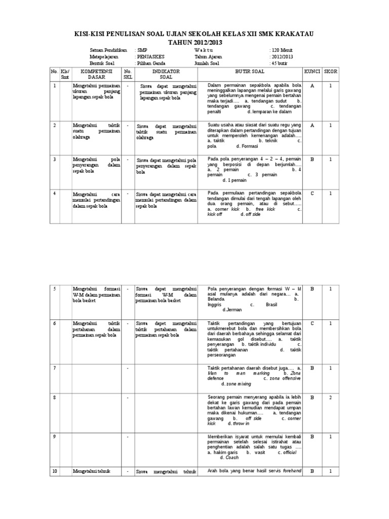 Contoh kisi kisi uas kelas x kurikulum 2013.